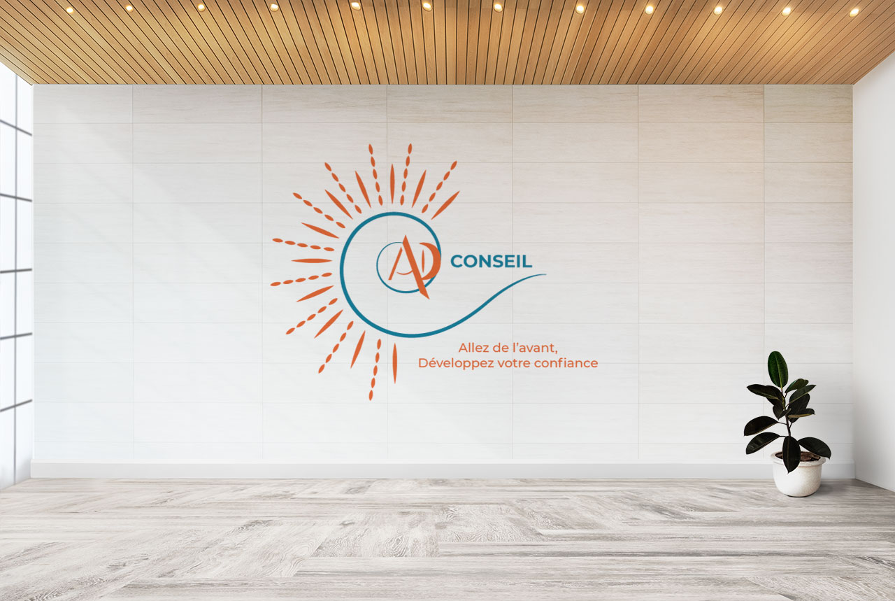 Le logo et la charte graphique sont déclinés sur les supports de communication d’AD Conseil.